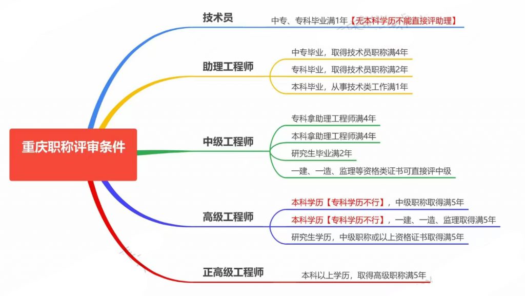 - 1、大学专科毕业,获得助理工程师或者二建4年,或获得一建一年以上,重庆社保累计一年以上,评审的时候买起社保的